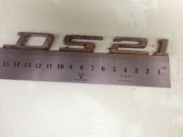 Moi Vähän erikoinen kysymys; voisiko joku mitata missä kohdassa ovat DS 21 kirjaimet ja numerot (irralliset) paksin kannessa. Kuvista näyttäisi siltä, että ne ovat paksin kannen alareunan kanssa saman suuntaisesti? Millä etäisyydellä (vähän vaikea kyllä mitata, kun alareuna kaartuu, mutta jos vaikka suorassa kulmassa kannen pintaan nähden ja siitä sitten mitta alareunaan). Sitten pitäisi vielä saada seuraavat mitat: Merkkijonon kokonaispituus, kirjamien ja numeroiden välissä on pidempi väli; kuinka pitkä, viimeisen numeron etäisyys oikeasta reunasta. Näillä mitoilla saisin asemoitua merkit (reiät) oikein paksin kanteen ennen kuin rupean laittamaan hiontaväriä. Alkuperäistä paksin kantta ei autossa ollut eikä varaosakansissakaan ole sellaista kantta, josta voisi mittailla. Kyseessä on -68 Pallas projekti, josta olen harvakseltaan kertonut kerholehdessä.