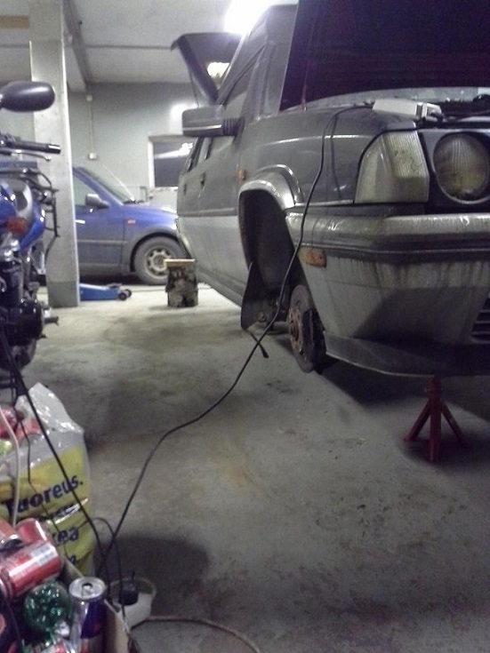 Tämä projekti ollut työkiireiden vuoksi jäähyllä mutta toki jotain on tapahtunutkin. Pitkät putket ovat tosiaan vaihdettu ja jousitus pelaa vallan mainiosti d-mallin takapallojen kera Jarrut uudistettu ja jumittava takajarrusatula lähti mäkeen. Tallin vaihto tuli ajankohtaiseksi ja siirtoa varten hankin uuden pakoputkiston ja asentelin sen. Siirto Pirkanmaalle (150km) sujui ongelmitta, vaikka autolla ei käytännössä ole ajettu reiluun kahteen vuoteen. On se vaan pirullisen hyvä ajaa ikäisekseen. Myös mukavuusvarustetta hankittu, jahka talven mittaan askartelen auton valmiiksi niin auto saa tyyliinsä sopivat nahkajakkarat. Homma vähän venähtänyt mutta aikomuksena on pyhittää yksi vkl kuussa remonttia varten eli yöpyillään tallilla ja laitellaan vania. Perästä kuuluu