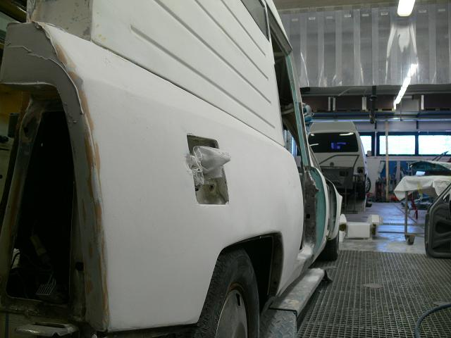 Viedessäni koria maalaamoon, olivat ovet ja luukut sekä puskurit jo pohjamaalattuina. Joten jos tahti pysyy samana, ehtii lotjan saada ainakin päällisin puolin liikennöitävään kuntoon kevään rientoihin. Sisälmyksiä tahkotaan sitten kesän aikana tähtäimessä Yorkshire.