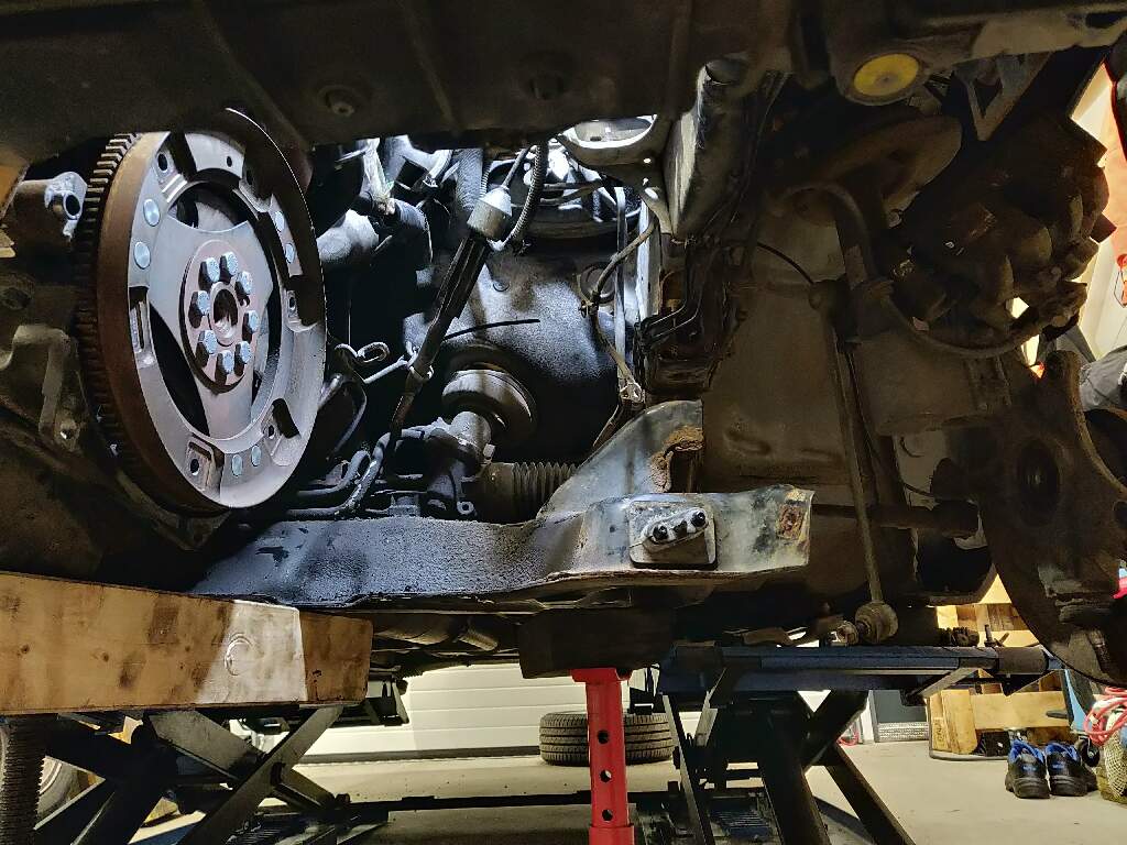 Tuohon vaihteiston irroitukseen liittyen, itse roikottaisin moottoria norsulla ja laskisin laatikon alakautta ihan käsin. Tuostakin lähtee näemmä apurungosta etupää pois tieltä, voi olla että sitä kautta saisi riittävästi tilaa moottorin ja laatikon väliin tiputtamatta koko laatikkoa.