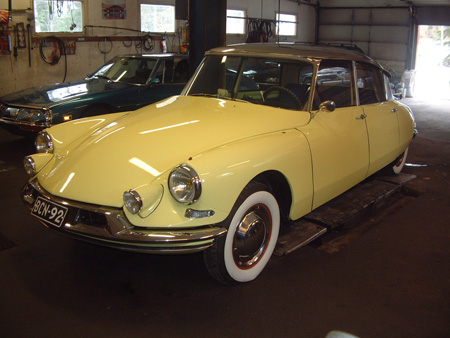 DS:stä tulee niin fiftari kuin olla voi. Keltainen kuori, sinimustat helánca-penkit ja ovipahvit, ihmeellinen keltainen kullankimaltava kattoverhoilu, ferrexinpunaiset vanteet ja valkosivurenkaat.