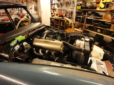 Iidustahan puuttuis enää konehuoneen sähköt, konepellin ja kuskinoven "tällääminen", pakoputkisto, pintapeltien maalaus ja etulasi. sitten vaan leimalle.