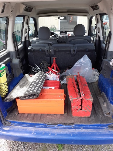 Nyt on opetushommat tauolla. Konserttia pukkaa oppilaalla, katsomossa ja vähän lavan reunallakin. Mutta jees, autoiltu on taas vanhaan malliin, siivosin ja sortteerasin Berlingoa sen sydämensiirron jäljiltä, liimasin asennetarrat ja kaikki. Kiersin autoa suu maireassa hymyssä ja tillitin silmät ihastuksesta raollaan auton sympattista etukenoa ja korkeata katon linjaa. Kaivoin puhelimen taskusta. Otin teille pari ihalijakuvaa tähän. Vaimo katteli mun touhujani keittiön ikkunasta: