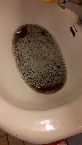 No, tämä sama mää kysyin siltä naisista nuorimmaiselta, siltä, millä on se ihan tuore ajokortti, lainaan Liidelistä halvennuksella klaaniin hankittua tekstiilipesuria. Eli märkä-kuivaimuria, missä on normaalien pölypussien lisäksi mahdollisuus ruutata vettä (tai Spezialtextilreinigungsflüssichkeit:iä) samasta kahvasta, mihin laitetaan veden imurointiin tarkoitetut suulakkeet. Aloittelin varovaisesti laimealla yleispesuaineella. Kauheeta, kauheeta sieltä imurin pöntöstä löytyi ensimmäisellä pesukerralla. Blackwater! Sehän on se brittiluutnantin perustama firma, mistä tuli nykyinen Wagner? Vai olenko mä taas sekoittanut asioita, mikä ei ole kovin tavatonta. Kuvassa Blackwater:ia toissapäivältä.