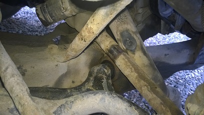Voi kiesus! Pakosarjan vaarnoja ja muttereita on nyt äpöstelty neljä rupeamaa. Kone autossa kiinni. Sain kaikki vanhat vaarnat kierretyksi ulos, mutterit nimittäin eivät auennet, vaan vaarnapultit tuli nätisti kiertämällä, paitsi yksi. Se katkesi. Ja syvälle. Pyydettiin paikalle asiantuntija kiertämään sen ulos porakone-torxavain-poppakonstilla.