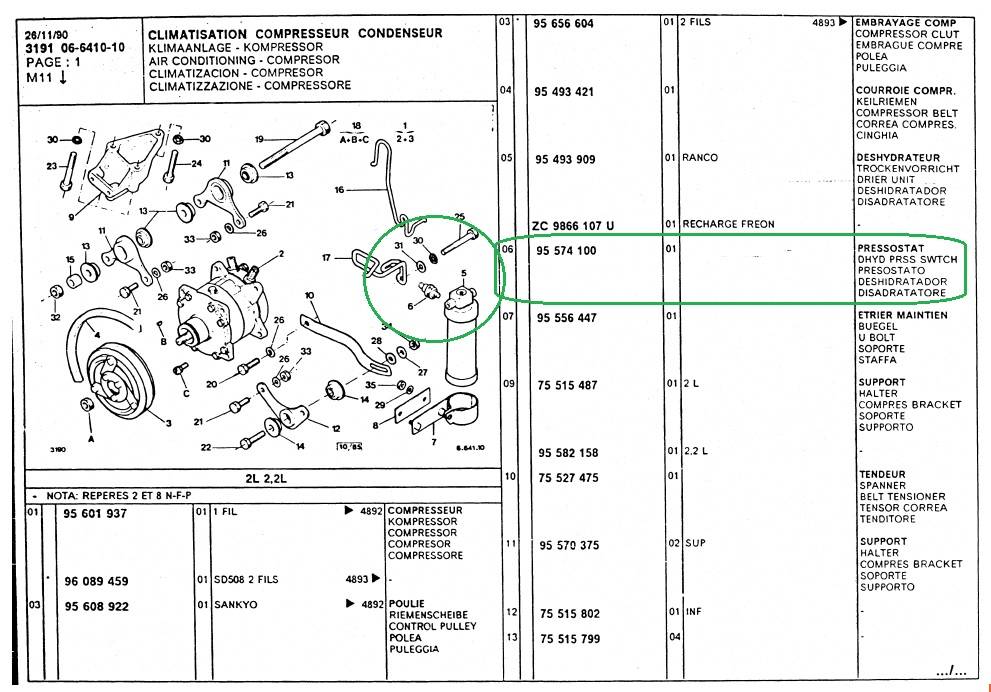 CX ilmastointi rupeaa sähköisesti olemaan ehjä. Kompressorin magneettikykin naksahtaa. Kylmää vaan ei tunnu tulevan. En kovin kauaa uskalla sitä kompressoria pyörittää, kun en ole olenkaan varma, onko siellä kylmäainetta lainkaan. Kuvien mukaan siellä pitäisi olla painekytkin. Mistähän tuo mahtaa löytyä autosta? Eikö tuon painekytkimen pitäisi nimenomaan toimia niin, että, jos paineet liian alhaalla (järjestelmä tyhjä) niin kompressoria ei kytketä? Liitteenä kuva. Osa nro 700 on painekytkin ja 410 se magneettikykin.