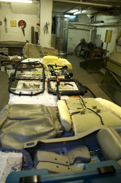 Ei tarvinnut noissa nahkapenkeissa ainakan ratkoa mitään (ja Y3:n ovat nuokin), keskemmällä verhoilu on kiinni metallisilla C-klipsuilla (näille on verhoilijoilla jokin omakin nimi) ne pitää avata, että saa pujotettua irti / kiinni laitettaessa taas puristettava kiinni. Rakenne on sinänsä aika simppeli, mutta aikaa vievä koota takaisin, ja käsivoimat kasvaa...