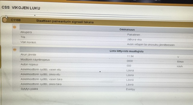 C1168 ja C1169 rear static pressure sensor signal herjaa antaa ..