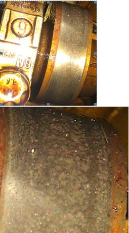 Varsinkin suurennosta katsoen näkyisi olleen vesivoitelu*....oikein ruostetta....Öljypumppu ei ylös asti jaksanut pumpata? *Joka taisi toimia Kolmex-kiertovesipumpussakin, jo 60-luvulla.