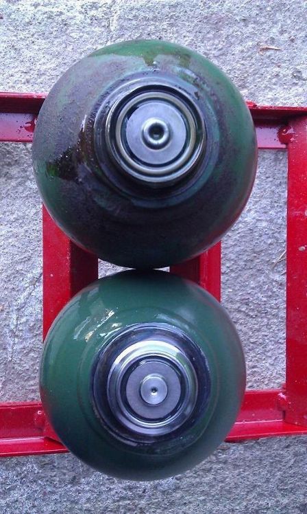 Takapallojen otsapinnat ovat näyttäneet osin ruosteisilta, osin sylinterin karpan.....puree kyllä kiinni. Nyt olevat pallot ovat "tervattu" siltä osin. Ja vielä tervaa sauman päällekin.