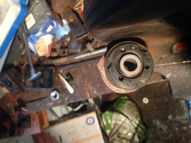 Minä kun rakennan tuota omaani kuin sitä kuuluisaa Iisakin kirkkoa, niin nyt vasta aloitin puslahommat. Kyselin tuossa aiemmin, onko etummaisen puslan asennolla merkitystä kun se ei ole umpikumia vaan jotain pykäliä siihen on valettu. Laajalti oltiin sitä mieltä, että tuon asennolla ei ole mitään merkitystä ja nuo kolot ovat valun jäljiltä. No, minä nyt joka tapauksessa järkeilin, että josko tuolla kuvassa näkyvällä tukivarren pykälällä on jokin korkeamman voiman määrittelemä merkitys eli puristin nuo etummaiset kuvan mukaisesti paikoilleen. Kuvassa pusla vielä niin sanotusti huulilla eli siksi saattaa näyttää oudolta,,,