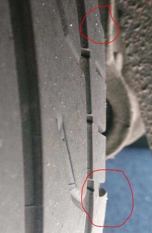 Renkaassa on jonkin verran pystykkäistä heittoa, mutta mistä tuo kulmikkuus voisi johtua? Onko mahdollisesti puslat vaihtokunnossa vai voiko sylinterin vuoto aiheuttaa tuollaista epätasaista kulumaa? Vai onkohan renkaassa jonkinlaista kudosvikaa? Niillä on ajettu n. 37000 km, joten vaihtoon ne menee viimeistään keväällä.