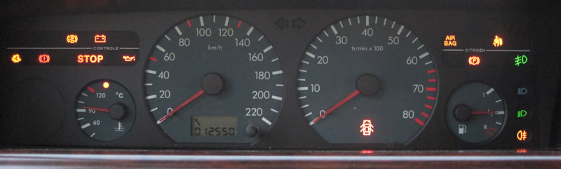 Ja tuossa kuvaa ottaessa on tehty juurikin niin, että stopattu, kaivettu kamera esiin, laitettu säädöt kohdilleen ja käännetty avaimesta. Pysähtyessä taisi näyttää juurikin yhdeksääkymmentä astetta. Ja sitä tuo muistaakseni useimmiten näyttää, emännän 2.0 16V näyttää vähän vähemmän. Aikoinaan 1.8 8V seilaili 80-90 välillä, mutta viisarin sai jämäytettyä paikoilleen termarin vaihdolla.