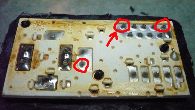 Tässä kuvat sähköventtiili-paketista ja siinä olevasta releestä. Toisessa kuvassa relepaketti pohjasta avattuna ja siinä kylmäjuotospaikat jotka olen juottanut uudelleen ja toisessa kuvassa kytkennät yms. Nyt olen myös sahannut itse releen auki.