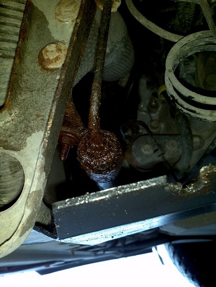 Katsastaja sanoi jostain tolpan juuresta kastuvan. Kurkkasin lokasuojan välistä ja epäilisin paluuputken katkenneen tahi irronneen.