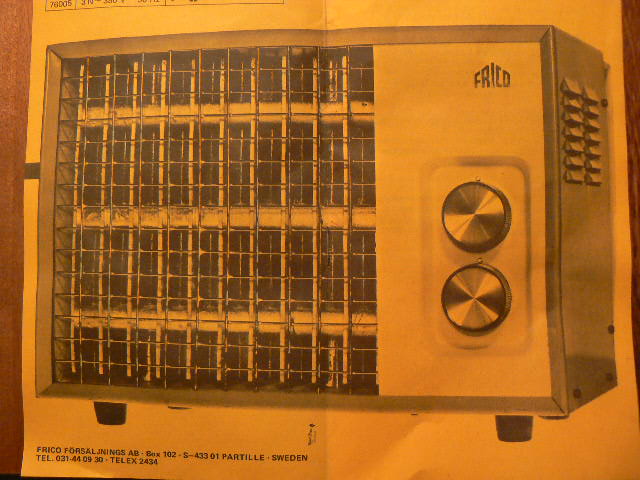 Ostin kesähelteellä kirpparilta tällaisen punakuorisen ruotsalaisen Frico-lämpöpuhaltimen. Laite on uusi, oli vielä tehtaan paketissa. Kun laitan lämmittimen päälle, puhallin rupeaa puhkumaan vaikka termostaatti on lähes nollilla. Lämpöä ei kuitenkaan tule ennen kuin laitan termarin isommalleen. Silloin sitä kyllä tulee. Sähkövastukset on valettu johonkin metalliseokseen, aivan kuten oli vanhoissa auton sisätilan lämmittimissä.
