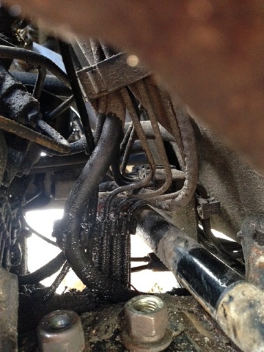 Onko sullakin edessä tuon saman eli takaa vajoamisenestoventtiililtä eteen turvallisuusventtiilille tulevan putken eli putken numero 1 vaihto ? Katsoin, että myös viereinen pitkä jarruputki eli oikean takapyörän edessä olevasta haaroituspalasta eteen asti tuleva putki numero 9 on taka-apurungon yhden muovikiinnikkeen kohdalta niin rapeassa kunnossa, että kannattaa ehdottomasti vaihtaa samalla.