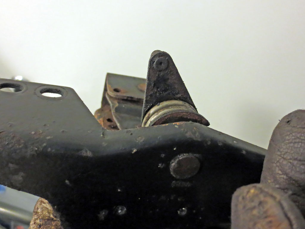 Vai on se rulla. Hitsasin siihen nimittäin 6 mm tapin pyhinä. Pitäisköhän ottaa uudestaan käsittelyyn ja viritellä siihen rulla. Sen saranatapin rälläköin myös irti ja sen tilalle virittelin 12/8 hydrauliikkaputkenpätkästä holkin ja laitoin pultilla kiinni. Sen huomasin, että pultin kanta pitää laittaa keskipallon puolelle ja hioa alas, koska siinä raossa on tilaa aika niukalti. Pultin olili voinut hitsatakin kiinteäksi, jolloin kantaa ei tarvitsisi lainkaan. Vanha tappi oli vaan niin ruosteessa ettei se rasvasta huolimatta kulkenut kunnolla, vaikka se on muoviholkin sisällä.