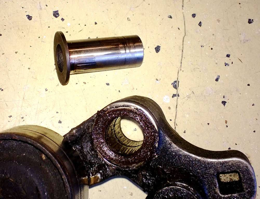 Ohessa hihnankiristin jonka sisäholkissa näkyy neulalaakerin "ristiriipunta" eli neulojen kuluttamat urat vastakkaisilla puolilla. Hihnan kireys aiheuttaa ko. laakerille kippimomentin ja pieni edestakainen liike väsyttää akselin. Aiemmin uusin tuollaisen toiseen autoon jossa ko laakeri oli jo paljon pahemmassa kunnossa. Siinä rispas hihnan reunaa ja se hankasi jakopään koppaan. Tässä, jossa näin kulunut, oli hihna vielä kutakuinkin keskellä rullia. Ensiapu tuohon, jos ei enempää sökönä, on kiertää tuo sisäholkki 180 astetta jolloin neulojen kuorma tulee terveelle akselille. Sitä varten kannattaa merkata holkin pään asento moottorin runkoon nähden jottei tarvitse arvailla takaisin laittetaessa hihnavoimien kippimomnettien suuntaa neulalaakereille.