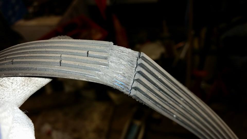 Hämmästys oli kyllä suuri, kun ääntä aloin tutkimaan stetoskoopilla ja koneesta ei kuulunut mitään erikoista. Ainoa paikka missä tuo naputus kuului oli moniurahihna se automaattinen kiristin. En millään uskonut, että 30tkm ajettu moniurahihna voisi vielä olla pilalla... mutta niimpä se vaan oli. Näky oli aika lohduton: