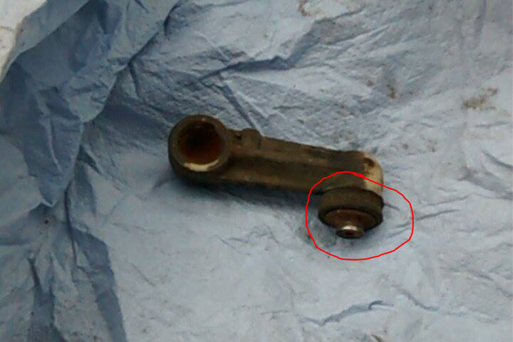 Kuula siinä on, alunperin kiinteä. Kummasta päästä kuula on poikki, vakaajan vai säätimen päästä? Useammin taitaa ruostua vakaajan päästä poikki, tosin tuo mutta tuo näyttää säätimen pään prässätyltä kuulalta kumipehmusteineen.
