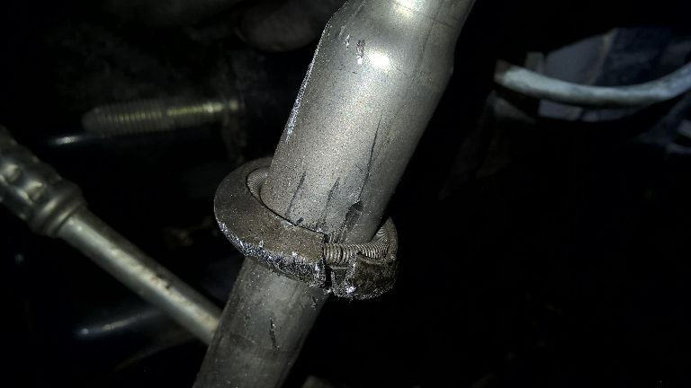 Oletan, että jos on mahdollista irrottaa se kennon pään laippa ja siten saada ne kaksi putkea erilleen, voisi sen pitkän putken saada taiteiltua sieltä kolostaan läpi...