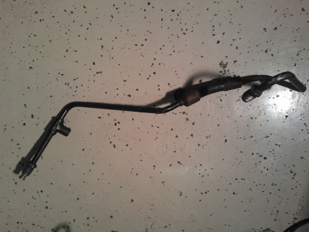 Vasen eli kuskinpuoleinen keskipallolta lähtevä ja jousisylinterille menevä T-liittimellä varustettu hydrauliputki on murtunut poikki. Putki pn halkaisijaltaan 10 mm ja sen T-liittimeltä lähtee ohut 3,5 mm putki jarrupoljinventtiilille.