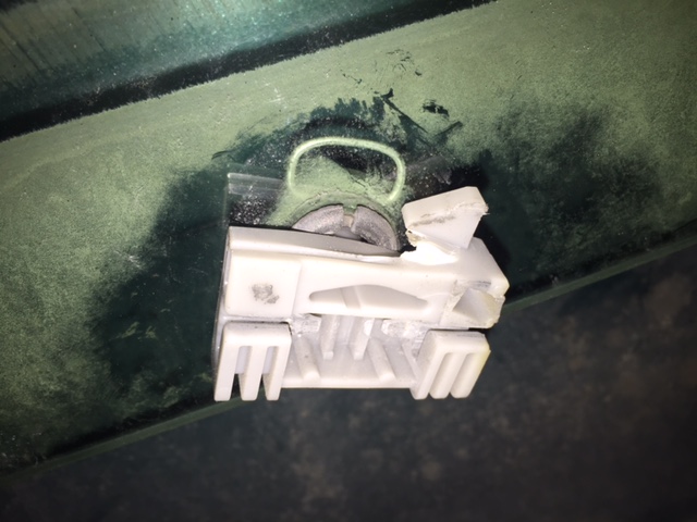 Putos lasi oven sisään tänään. Purin ovipaneelin ja sain ikkunahissin ja moottorin vaijereineen pois ovesta. Kysymys kuuluukin, millä ihmeellä tuon lasinkiinnitys "sokan" saa irti ovipellin puolelta? Temppuilua, voimaa ja väkisanoja käytetty toista tuntia... Vaijerit kun tuosta palikasta lohjenneet irti, niin pääsis korjaamaan... Nyt ikkuna ylhäällä jesarin voimin...