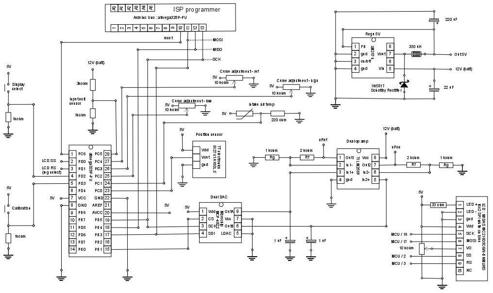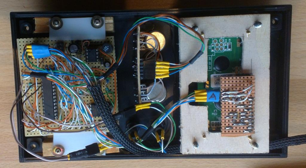Jos on tarvetta niin minulta saa kyllä sähköpiirrustukset ja softat (sorsat tai binäärin tai valmiiksi lutikalle poltettuna). Ja neuvoja, tai ainakin kommentteja omista kokemuksista tuota puuhatessa. Tuon juottelu on suhteellisen suoraviivaista, vaikka se hieman sekavalta näyttääkin. Alkaa kyllä maistua puulta jossain vaiheessa. Ota vaan kolvi käteen, et halua minun sitä tekevän (myyrän näkö ja peukalo keskellä kämmentä). Hall-anturi on kiinni läpän akselissa rattailla jotka löysin entisen printterin sisuksista. Noin muuten taisi keskeisimmät viritykset näkyä kuvista.
