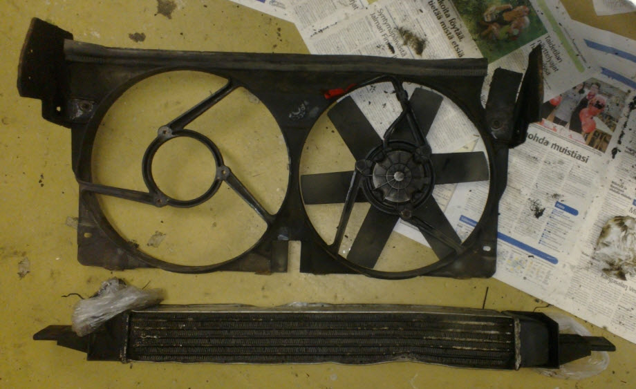 Seuraavaksi täytynee kokeilla josko välijäähdyttimen irrottamalla se koko kehys flekteineen tulisi ulos alakautta. Ehkä?