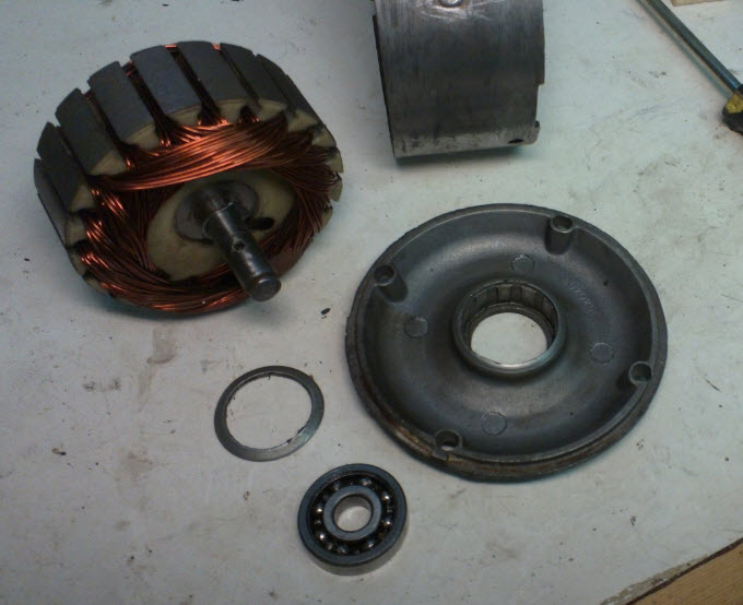 Kun flektin laakeri ehkä hieman rahisi pyöriessään niin kaivelin sen esiin. Proseduuri oli suunnilleen seuraava sen jälkeen kun moottori on purettu pisteeseen jossa roottori on laakereinen kiinni kannessa mutta irrallaan kaikesta muusta.