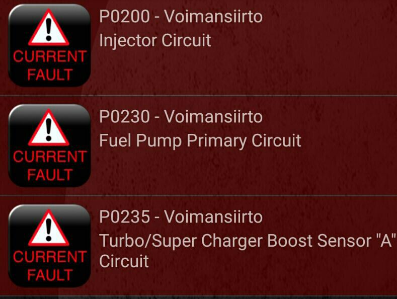 2003 mallin diesel C5 käy huonosti eikä tahdo oikein liikkua. Vikakoodinlukija jota käytettiin antoi kuvan mukaisia tuloksia. Mikäs hitto tätä vaivaa ja mitä pitäisi tehdä?