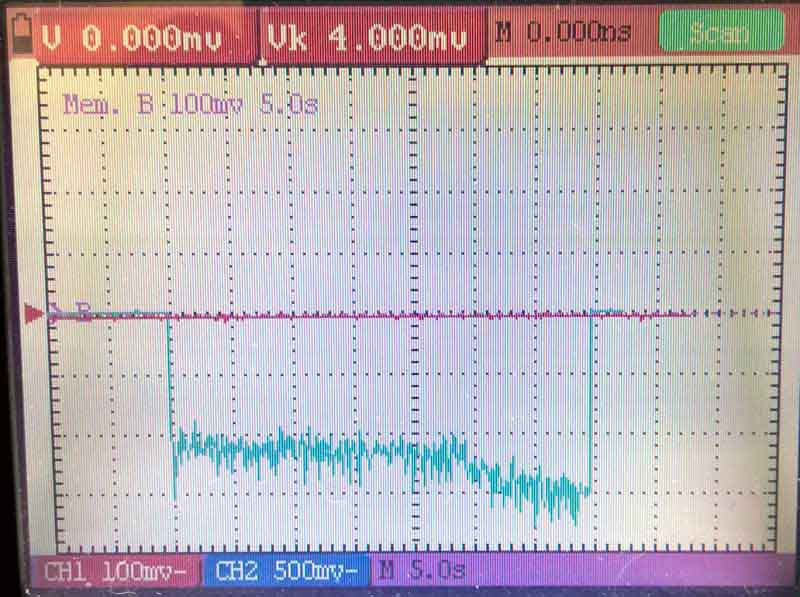 Virrat eivät ole vielä täysin asettuneet, koska hiilet eivät ole vielä kommutaattorin uudessa muodossa. Virtakuvaajista näkyy vielä piikkejä, joilla voi olla joku yhteys hiilien muotoon.