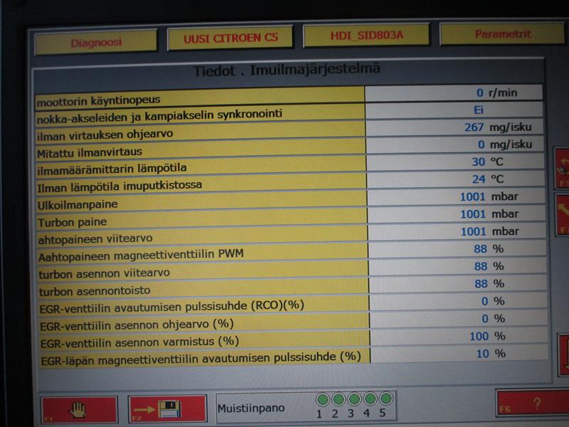 Eskere näköjään pastesi ei-Startin aikaiset kuvat, mutta startin aikaan tosiaan raili paineet oli siellä 500+bar tasolla jota lienee pyyntikin. Samoin mitattu ilmamäärä vastasi sitä mitä kone tahtoi eli noin 250mg per pamaus.