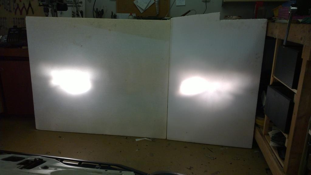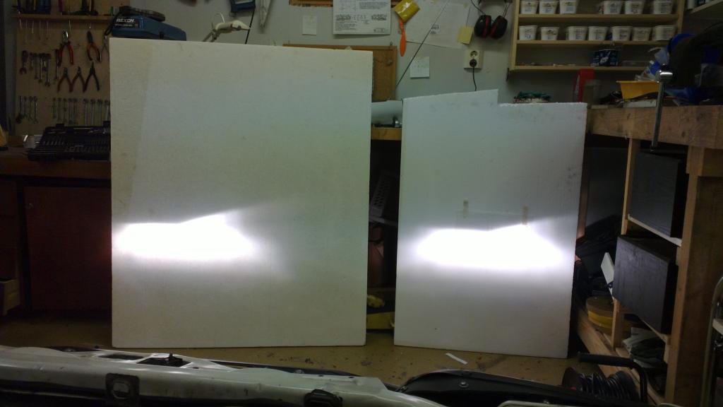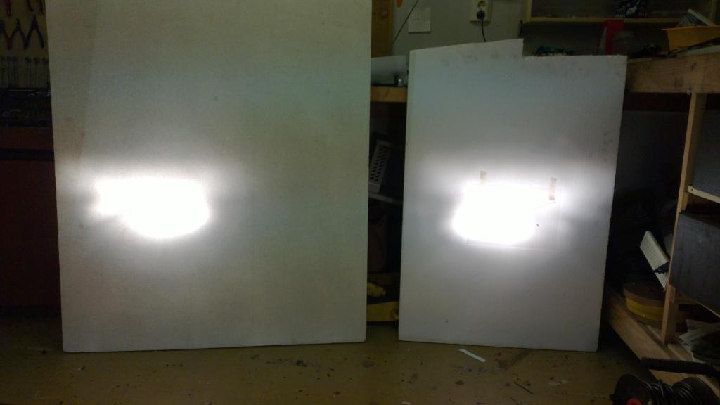 Varsinkin pitkillä näkee selvän eron valotehossa. Niissä tosin näyttää olevan pientä eroa suuntauksessa. Lyhyillä kirkkauden ero ei ole niin selvä, mutta luultavasti pystyn uskottelemaan itselleni että sekin parani. Kuvissa vasen on uusilla kytkennöillä ja oikea vanhoilla.