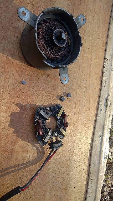 Vika löytyi hajonneesta flektin moottorista. Hiilet loppu/poikki. Laitoin hiilet yhdestä vanhasta xm:n puhaltimesta. Oli suunnilleen sama poikkiala mutta hieman eri profiili. Muokkasin pitimet sopivan terästuurnan päällä. Uudet/vanhat hiilet hieman pehmeämmät ja tummemmat. Saa nähä kauan kestää.