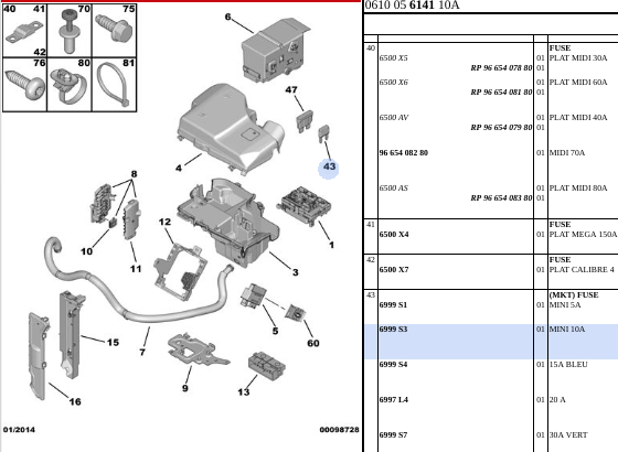 I changed a strip fuse: https://frenchcarforum.co.uk/forum/view ... hp?t=60408ja noiden toisenlaisten sulakkeiden ja sulakerasian sijainnista ei tainnut olla tarkkaa paikkaa? Tuo ruuveilla kiinnitettävä sulake taitaa olla toisiaan nimeltään Mega-fuse (Strip fuse, mutta se on pikemminkin yleisnimi ja niitä on montaa kokoa ja tyyppiä). mutta esimerkiksi Motonet taitaa kutsua Maxi-fusea Megalaattasulakkeeksi