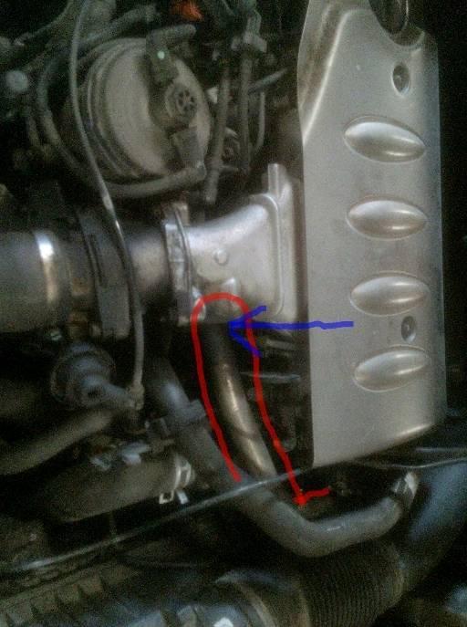 Punaisella kehystetty alumiinin värinen putki on egr.n putki mikä pitää tukkia, vanhemmassa laitetaan sinisen nuolen kohdalle pelti väliin mutta x7.ssa ei muistaakseni ole niin yksinkertaista.