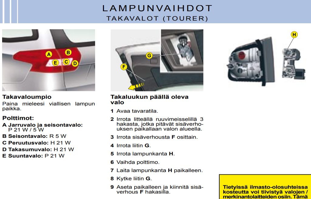 Luukussa on takavalo (seisontavalo), peruutusvalo ja takasumuvalo. Ei ole jarruvaloa.