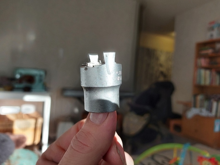 Nimen omaan näin, eli kunnollisen työkalun puuttuessa käännä puoli kierrosta, paina tai purista pihdeillä sisään, pyöritä taas jne.
