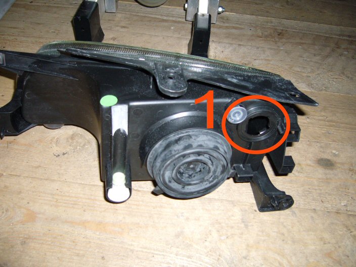 Aluksi kannattaa varovasti irroittaa keulamaski, vilkut ja valojen alla olevat muovilistat, jotta umpion saa irti. Itse umpion irroittamisessa ei ole ruuvien aukikiertämistä ja johtojen irroittelua kummempaa toimenpidettä, mutta itse jouduin tovin miettimään kuinka umpiosta saa valojen korkeussäätimen irti. Otin hommasta muutaman kuvan, joista kiinnitysmekanismi paljastuu. Elikkäs viimeisessä kuvassa oleva mötikkä on ykköskuvassa numerolla 1. merkityssä reijässä. Mötikkä lähtee irti kiertämällä sitä puolikierrosta jompaan kumpaan suuntaan ja muljauttamalla samalla sivulle päin. Siis numerolla 3. merkitty pallo on numerolla 2. merkityssä lovessa.