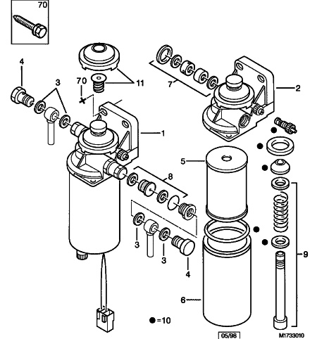 Öölivuotoon, niin otappa suodatin irti, ja kokeile onko tuo mutteri/pultti (kuvassa osa 2) kunnolla kiinni? Hyvin tyypillistä, että tuo löystyy ajansaatossa, kun suodatinta vaihdellaan, samalla kierteellä kun ovat...