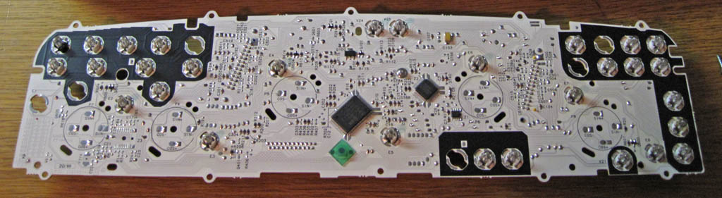 Koneistot näyttävät samanlaisilta, miksi olisivatkaan erilaisia. On tuossa yksi varamittaristo, jossa ei ole ö-lämpömittaria, vain peitelevy. Kuten xantiassani. Piirilevytkin on tyhjiä siltä osin. Olisin muuten laittanut ö-painemittarin= varamittarista koneisto ja tehty uusi asteikko ja sopiva anturi. Miten km-lukemaa voisi muuttaa, jos sattuisi hyppysiin tulemaan mittaristo ö-lämmöllä. Xantian konehuoneessa on kyllä vapaita (anturi?-)pistokkeita, olisiko jokin niistä johdotettu mittaristolle.