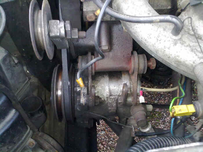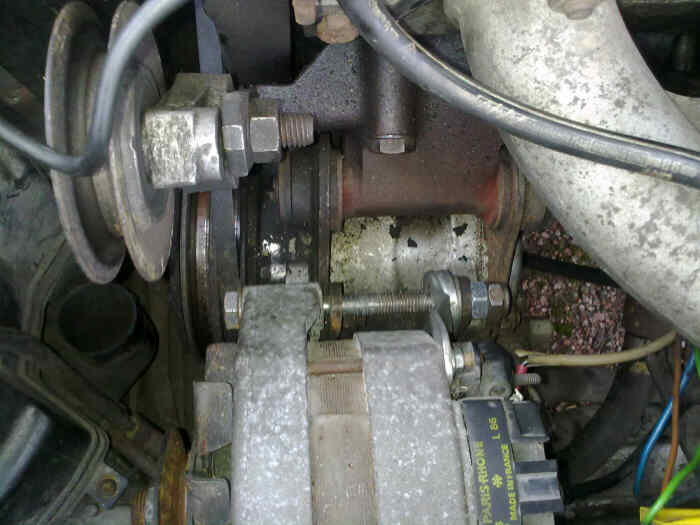 Tästä on ollut sivuavaa juttu jo tuolla "Ostetaan" osastolla ja tais olla yleiselläkin puolella jotain. Otan nyt asian esille vielä täällä tekniikkaosastolla kuvien kera. Auto on siis Cx 20 tre Diavia nimisellä ilmastoinnilla ja ongelma on laturin kiinnitys, joka on vähän virityksen oloinen ja sen seurauksena laturi ei meinaa asettua suoraan. Otin kuvia tilanteesta:
