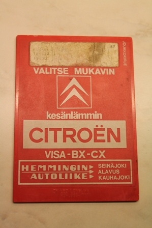Minulla on samanlainen CX:n ovitaskussa, tosin tietysti paikallisen kauppiaan yhteystiedoilla. :) Ainakin raapan sanoma (kesänlämmin Citroën) pitää paikkansa helteillä...