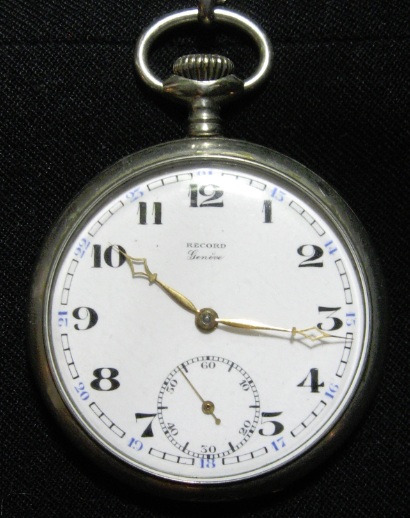Tuollaisen sain perintönä vajaa pari vuotta sitten. Takakannessa päivämäärä 20.4.1941, jolloin isäni sai tämän 15 vuotiaana rippilahjaksi. Ja sama kello oli puvun taskussa tänä kesänä, kun oma poikani pääsi ripille. Ja ehkä joskus tulevaisuudessa... Valmistaja on geneveläinen Record, joka oli ilmeisesti jossain vaiheessa Longinesin halpismerkki. Käy edelleen varsin tarkasti 71 vuoden iästä huolimatta.
