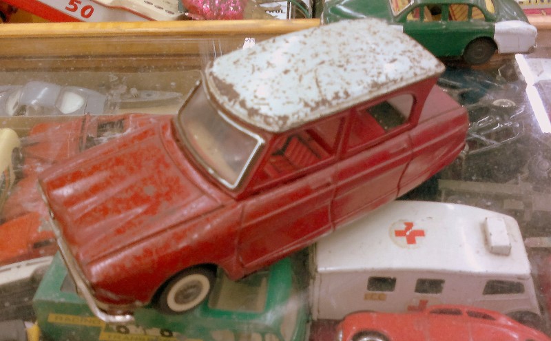 Yllättävän paljon oli pienoismalliautoja ja leluja tarjolla, oheinen Made in France -Ami jäi ostamatta, 80€ oli kuitenkin hiukan liikaa...