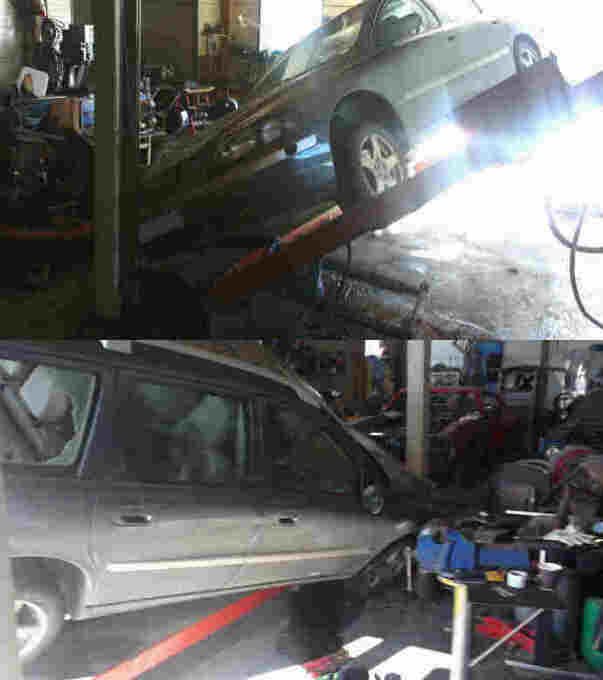 Äitin luona on autokatoksessa 2-tolppanosturi jossa on toisella puolella hydraulitunkki ja mekaaninen varmistin. Toinen puoli nousee vaijerin välityksellä samaan tahtiin. Sillä puolella ei sitten ole sitä mekaanista varmistinta joten ammattikäytössä moista ei enää saanut käyttää vaan se myytiin romun hinnalla pois. Aika tarkkaan tulee vaijeria silmäiltyä aina ohi kulkiessaan...