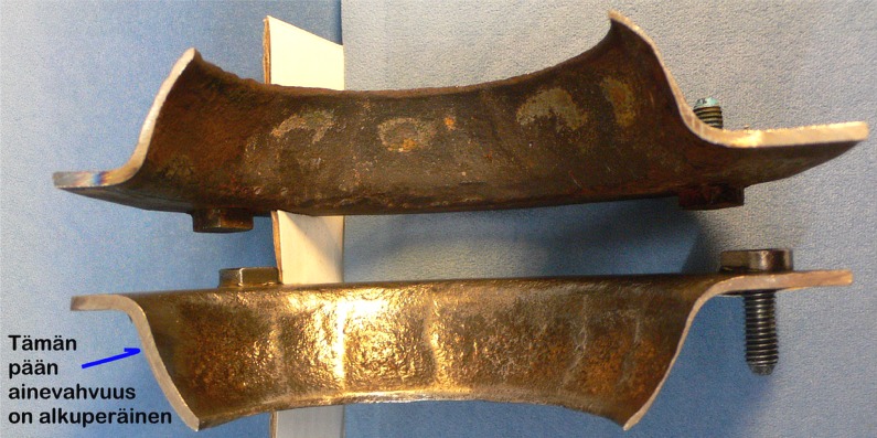 Keskiosan alapään n. 9mm jatko näkyy myös selvästi ja sekin on hitsattu saumasta muutamin kohdin.