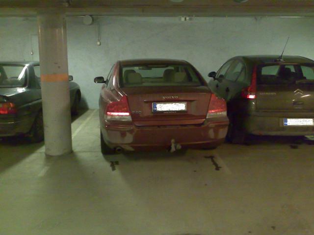 Mitä se olis auttanu? Toisella puolella on betonitolppa ja sen jälkeen taas autopaikka eli ei siellä puolella kamalan paljon enempää ole tilaa. Ja huomattakoon, että olin itse tuossa parkissa ensin ja tämä hieno v... tuli sitten jälkikäteen. Ja kaiken lisäksi pahimmillaan tämä toistuu päivittäin, kuva kun on työpaikan hallista ja paikat on nimettyjä... Mutta eihän "herra iso herra" välitä, miten autonsa laittaa. Ja yllättäen kukaan ei suostu vaihtamaan paikkaa, koska kaikki tietävät tämän ongelman...